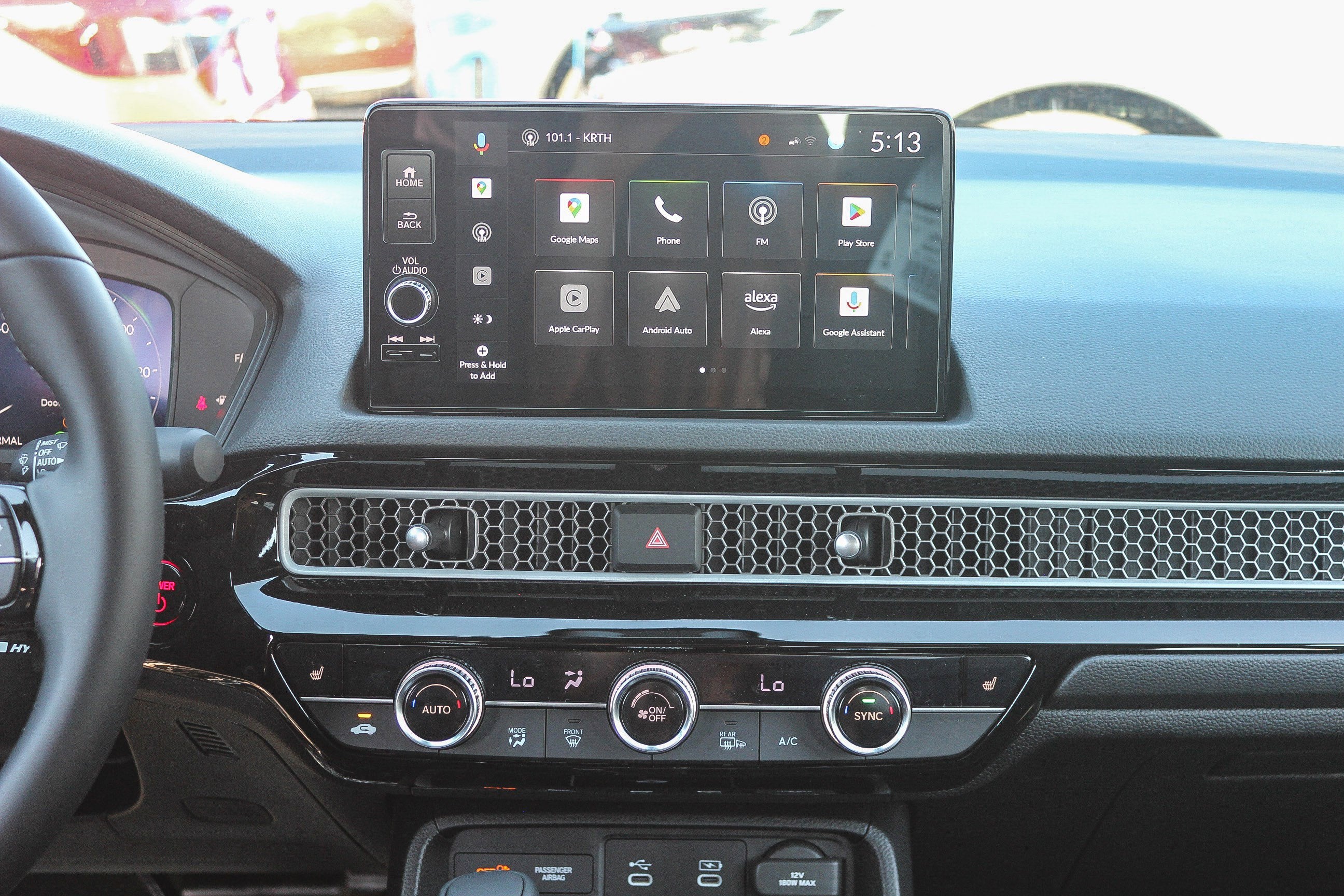 - Radio: Bose Premium Sound System -inc: 12 speakers w/subwoofer, 9" color touchscreen, Google built-in (includes 3-years unlimited data plan for in-vehicle apps), Alexa built-in, Bluetooth® HandsFreeLink and streaming audio, HondaLink, HondaLink subscription services, Speed-Sensitive Volume Compensation (SVC), Radio Data System (RDS), wireless Apple CarPlay and wireless Android Auto compatibility, Wi-Fi hotspot capability, USB-C 3.0A smartphone/audio interface/charging port and HD Radio