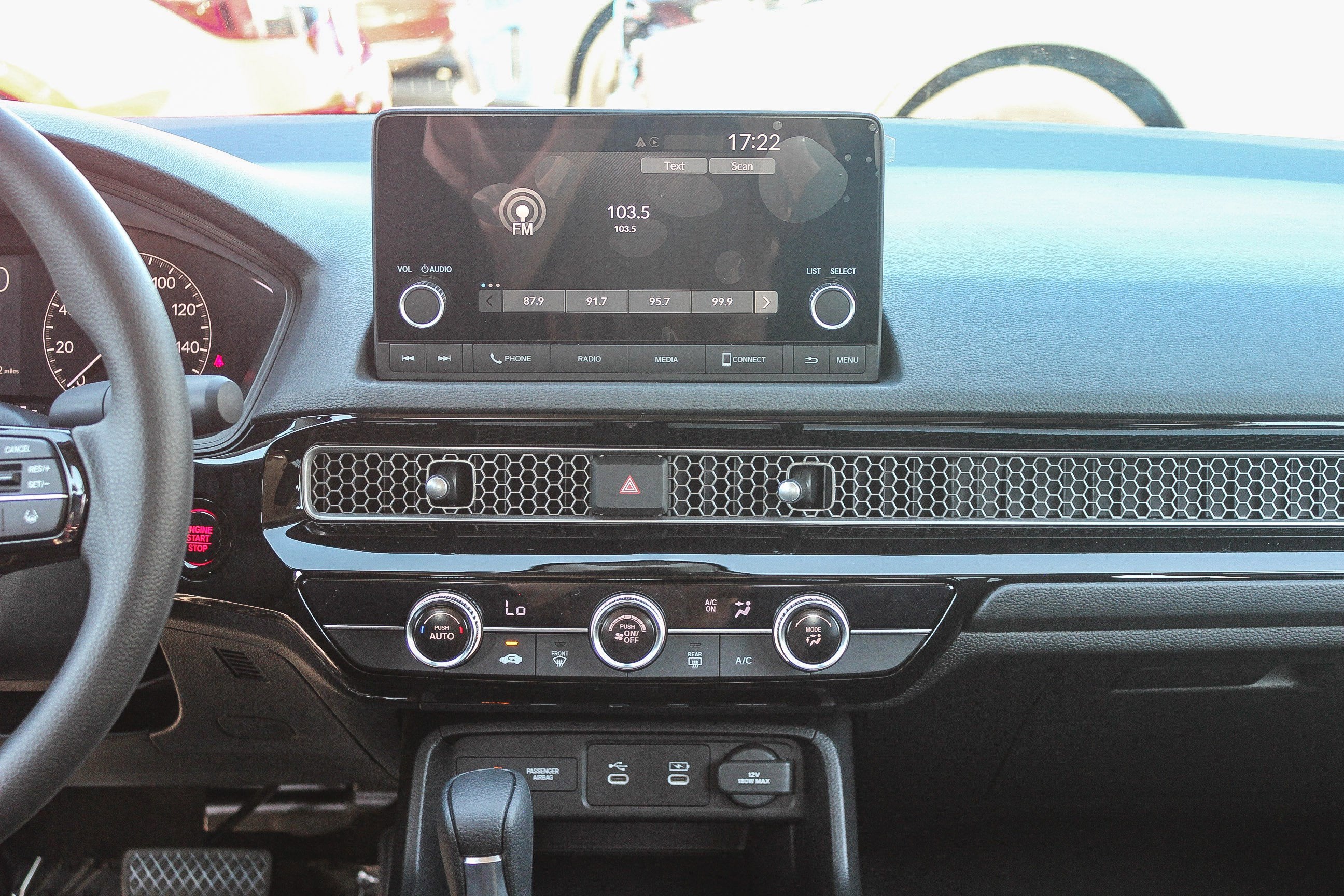 - Radio: 160-Watt Audio System -inc: 4 speakers, 7" color touchscreen, Bluetooth® HandsFreeLink and streaming audio, HondaLink, Speed-Sensitive Volume Compensation (SVC), Radio Data System (RDS), Apple CarPlay and Android Auto compatibility and USB-C 3.0A smartphone/audio interface/charging port in front seats