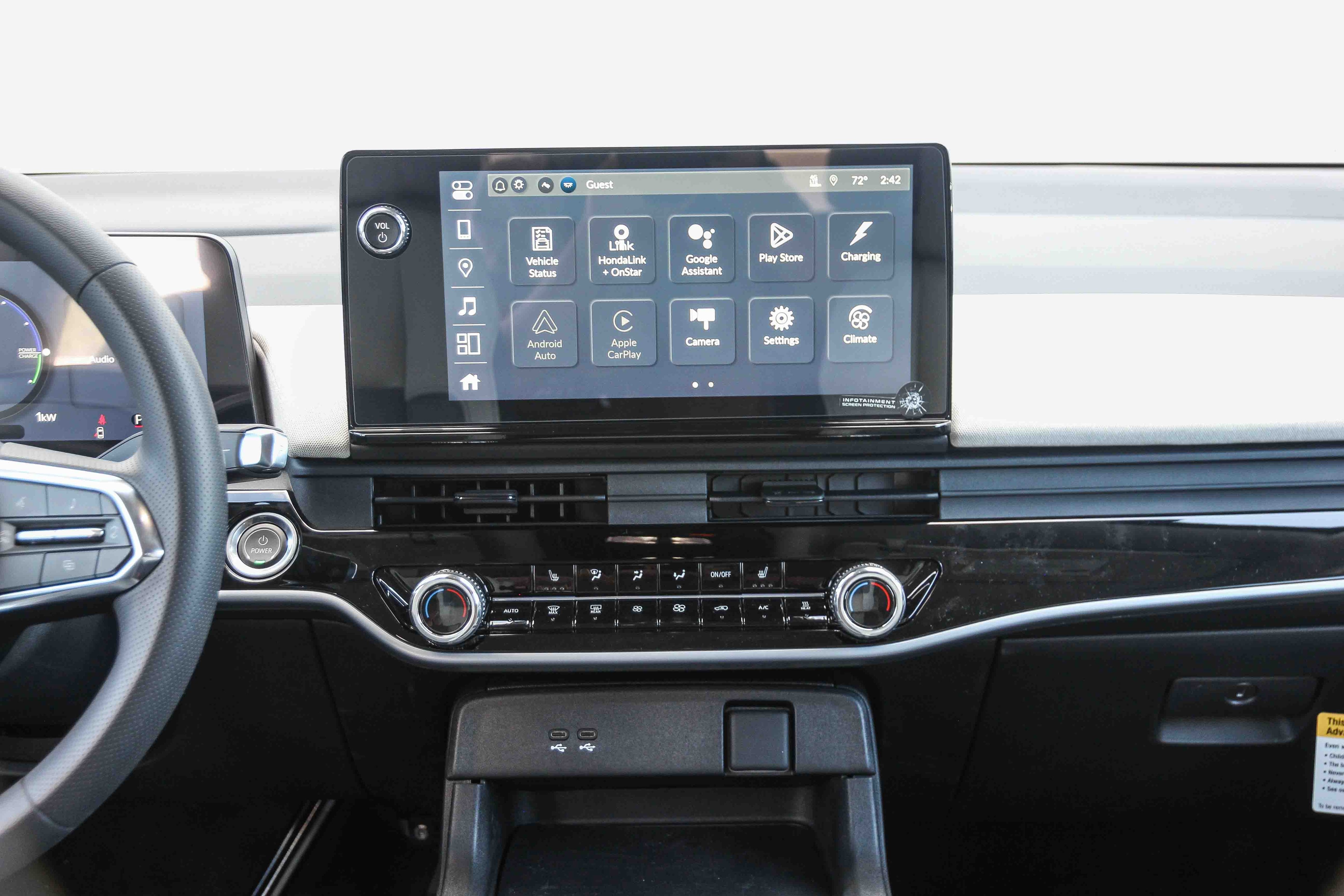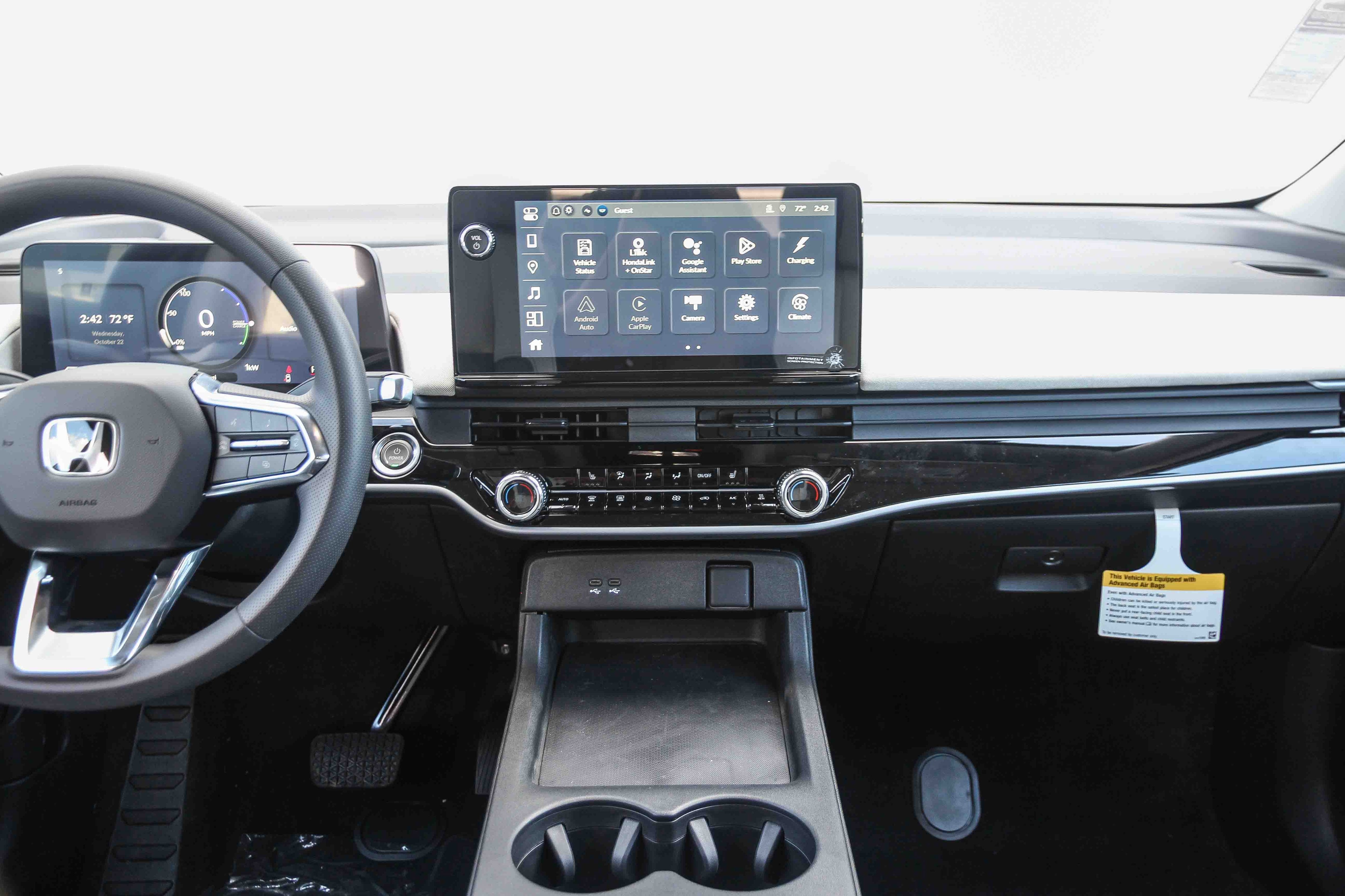 - Radio: Audio System -inc: 6 speakers, 11.3" color touchscreen display, Google built-in, wireless Apple CarPlay and Android Auto compatibility, Bluetooth® streaming audio, USB-C audio interface w/2 charging ports in front console, SiriusXM (All SiriusXM services require a subscription, sold separately by SiriusXM after the trial period, If you decide to continue service, the plan you choose will automatically renew at the then-current rates, Fees and taxes apply, See the SiriusXM customer agreement and privacy policy at www.siriusxm.com for full terms and how to cancel, which includes calling 1-866-635-2349, Available in the 48 contiguous U.S, and D.C, Some services and features are subject to device capabilities and location restrictions, All fees, content and features are subject to change, SiriusXM, Pandora and all related logos are trademarks of Sirius XM Radio Inc, and its respective subsidiaries), Wi-Fi hotspot capability, wireless phone charger and HondaLink connected by OnStar