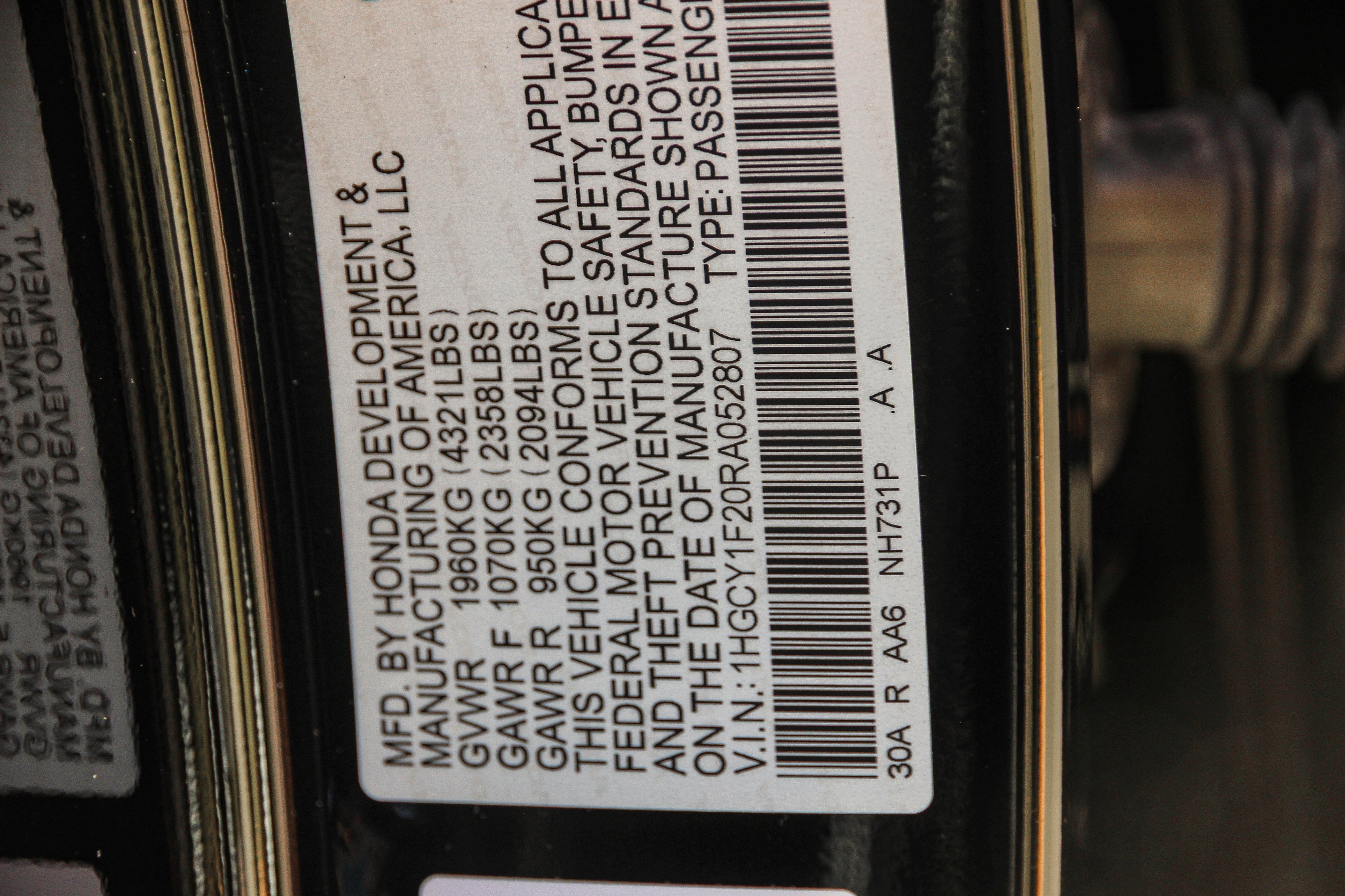 - Vehicle Name: Honda Accord Sedan